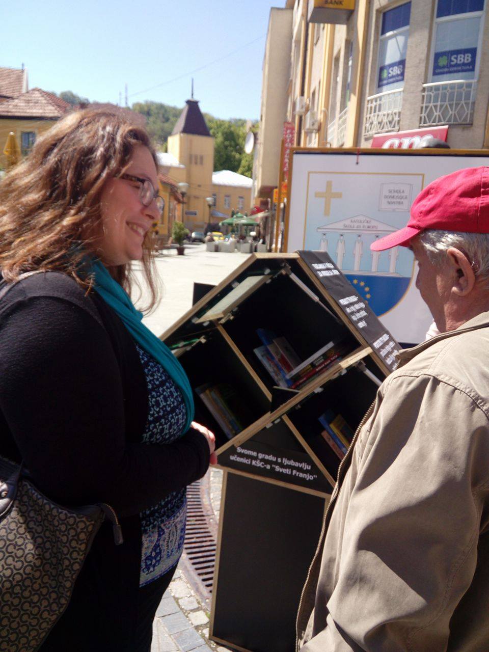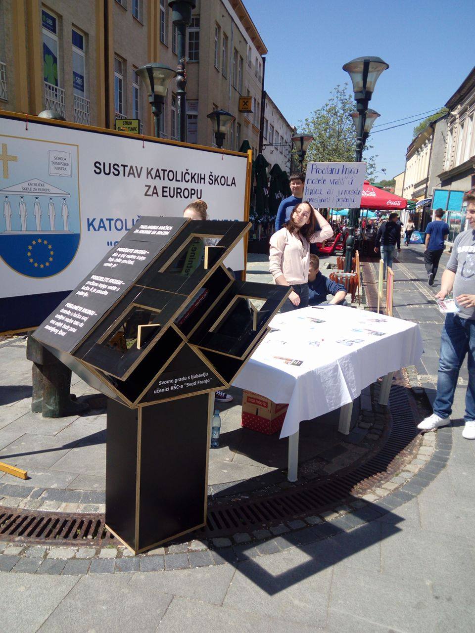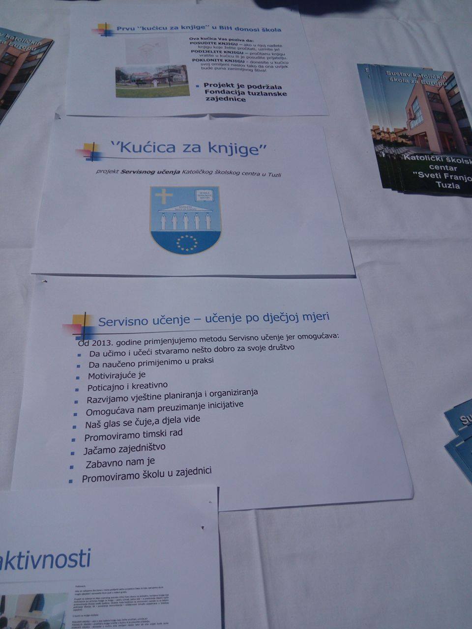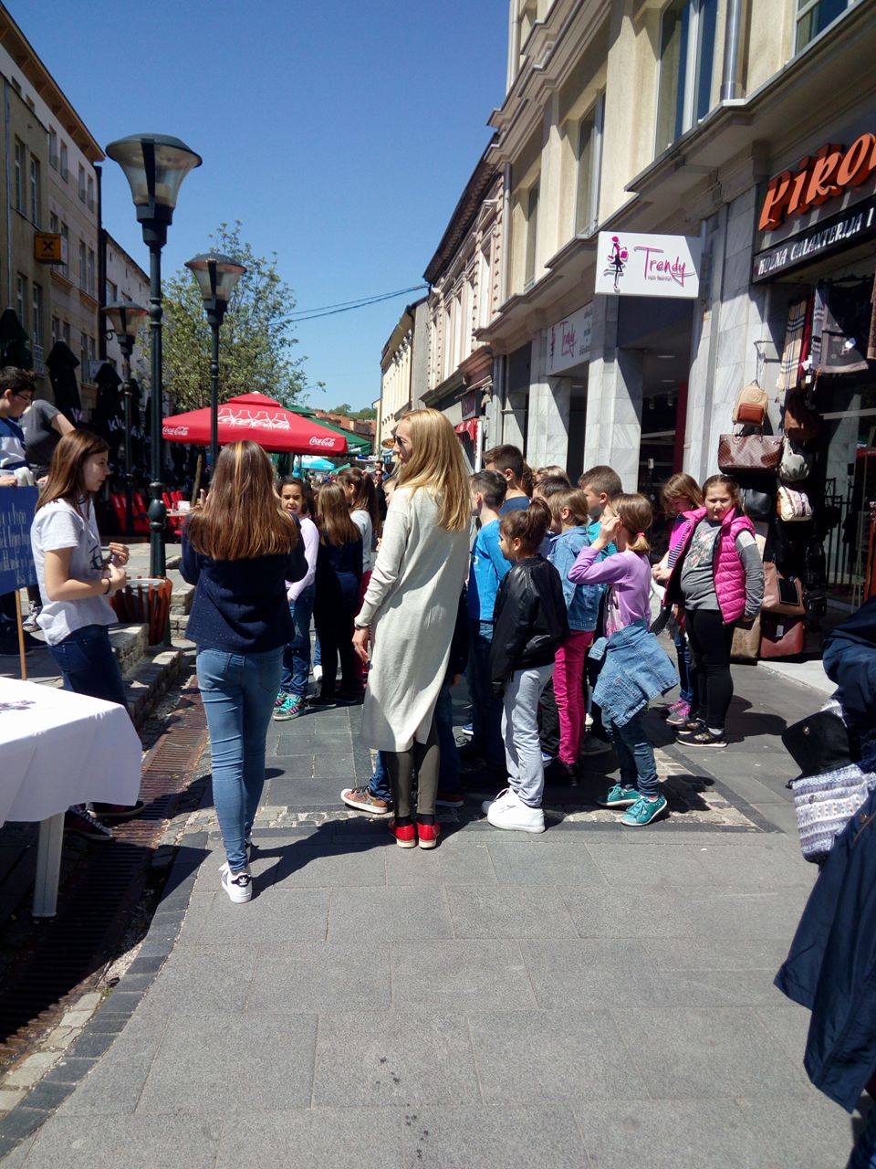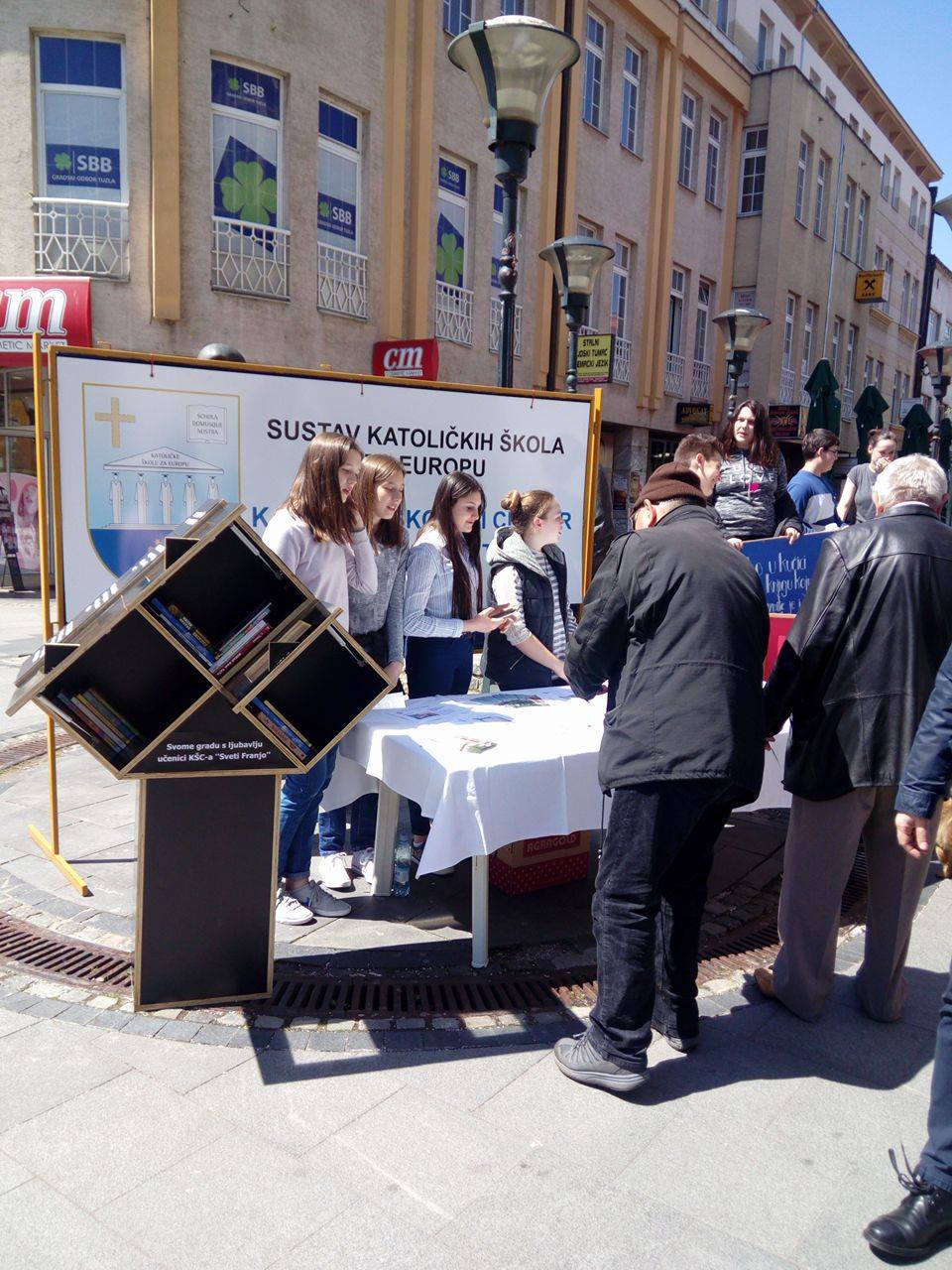 Jučer, 24.04.2017.godine, su privedene kraju aktivnosti vezane za obilježavanje Međunarodnoga dana knjige kojima se pokušala podignuti svijest o kulturi čitanja. Završni događaj bila je prezentacija projekta Little Free Library na kojemu je mjesecima radio vrijedni tim učenika i nastavnika Centra predvođen idejnim tvorcem, učiteljicom Ivanom Pejić. Projekt je podržala i Fondacija tuzlanske zajednice. Naime, riječ je o kućicama za knjige koje će biti postavljene u školskom dvorištu i u gradu. Njihova je namjena i primarni cilj poticanje naših sugrađana na druženje s pisanom riječju. Učenici 8.a zajedno s nastavnicom Marijanom Visković preuzeli su ulogu promotora te zadatak obavili besprijekorno. Oni su zainteresirane prolaznike upoznali s načinom korištenja mini knjižnica. Pojasnili su da će se kućice moći koristiti tako što će u njima svi koji žele, moći ostaviti, tj. darovati knjige, te iz njih posuditi one koje tamo zateknu, a učine im se zanimljive za čitanje. Dizajn kućica potpisuje likovna sekcija Centra na čelu s profesorom Borisom Pejićem. Uz prezentaciju projekta učenici su dijelili i letke na kojima su bile ispisane simbolične poruke o značaju i bogatstvu koje se stječe čitanjem knjiga.